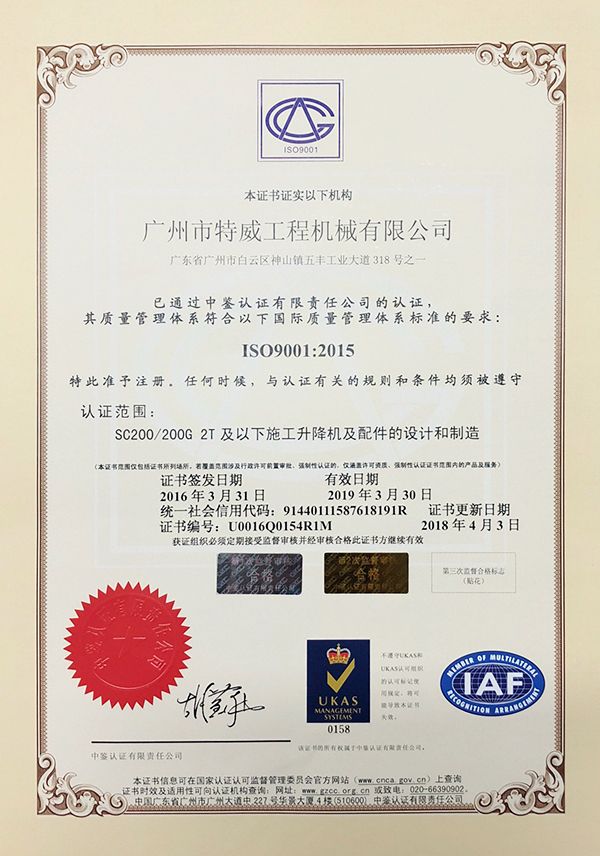 廣州市特威工程機(jī)械有限公司地處廣州市白云區(qū)神山鎮(zhèn),廣清高速神山出口附近,是一家施工升降機(jī)的專業(yè)生產(chǎn)廠家。公司成立于2011年,占地100000多平方米,注冊(cè)資金1060萬元,現(xiàn)有員工300余人其中工程技術(shù)人員33人,高級(jí)技術(shù)人員52人。